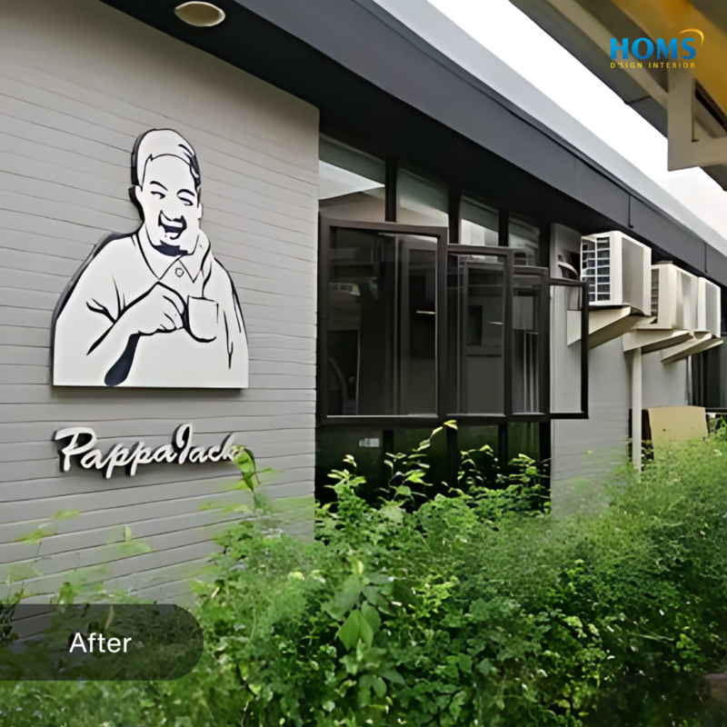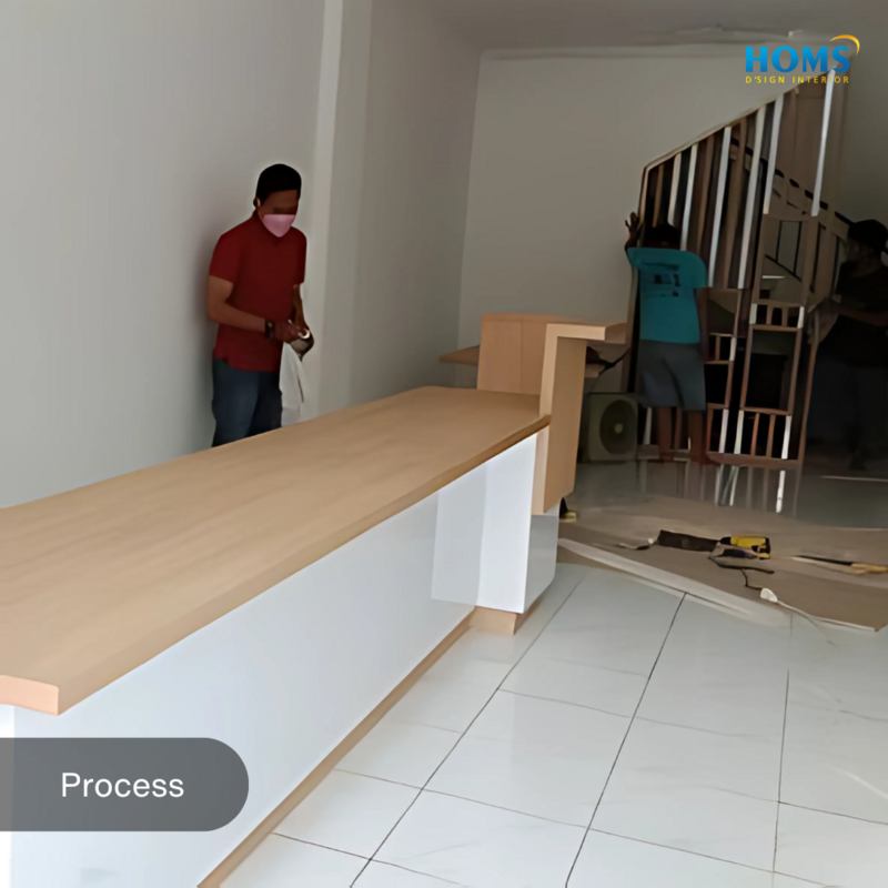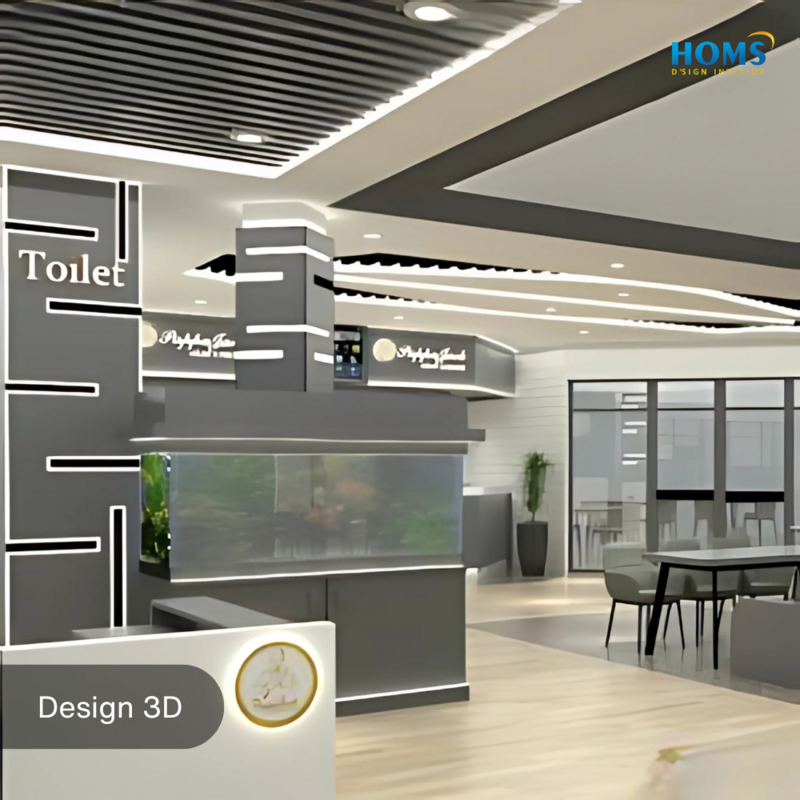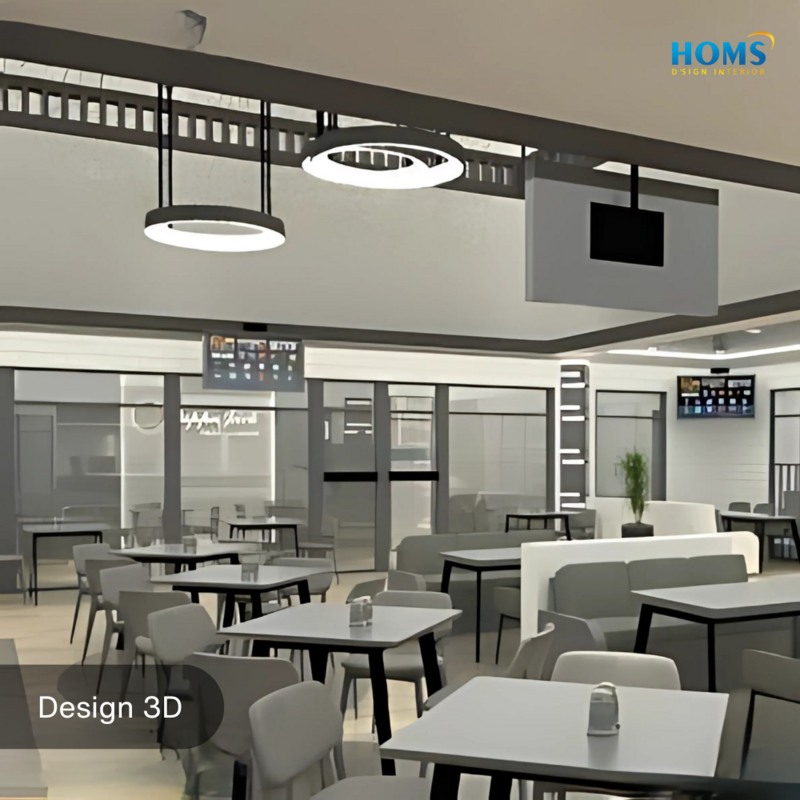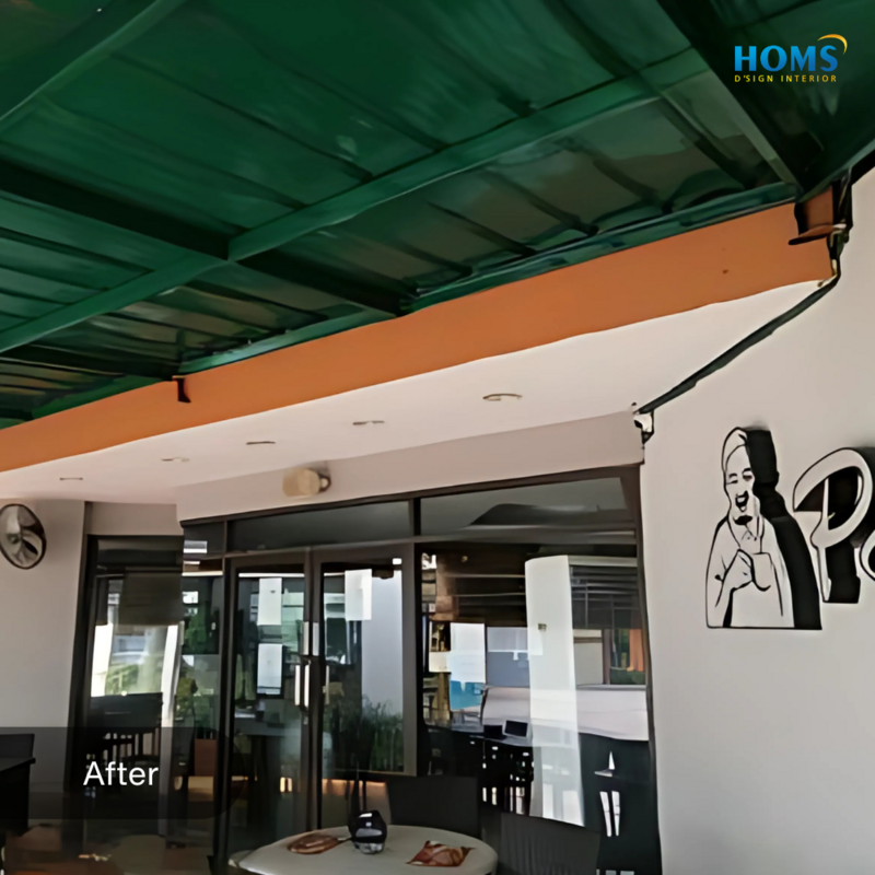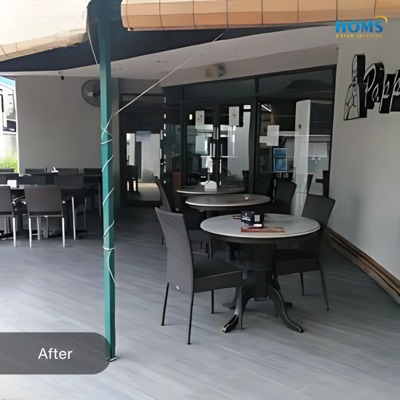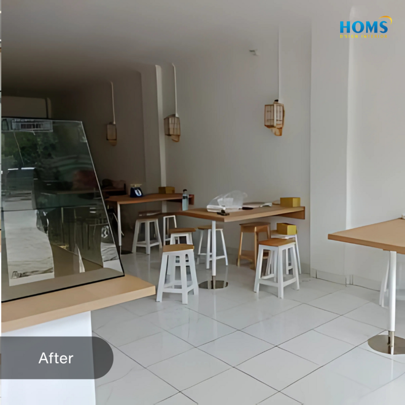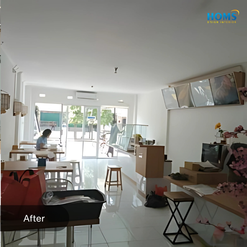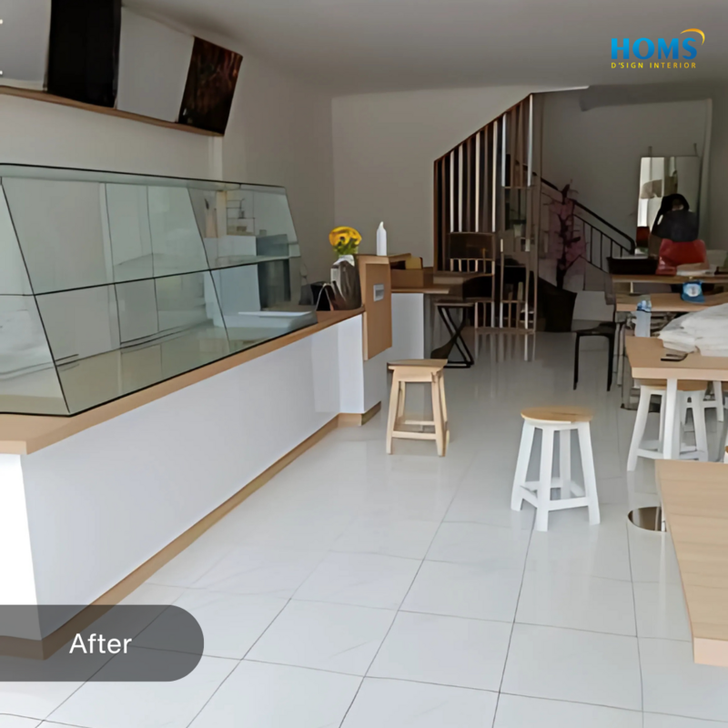 The interior design of this cafe is specifically designed to meet the needs of functionality and comfort in carrying out activities in a cafe or restaurant.