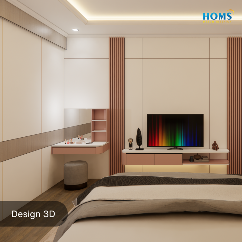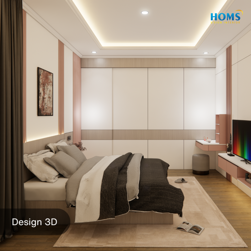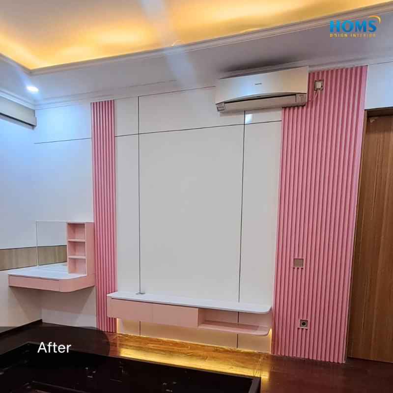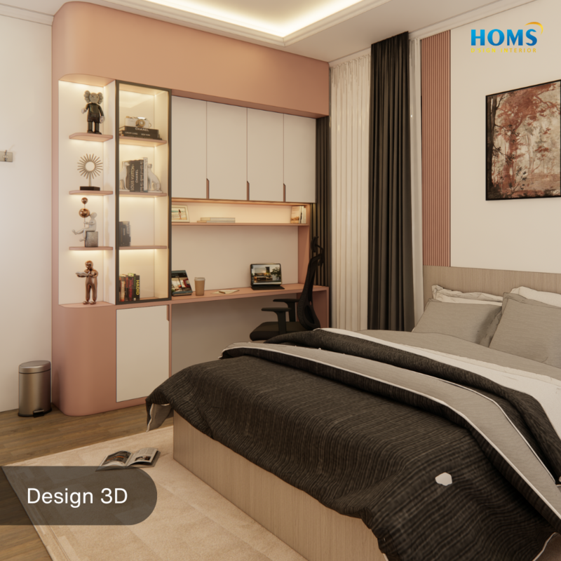 Dominated by soft pastel pink, this interior design is designed to convey a sense of security, warmth, and cheerfulness.